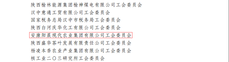 根據(jù)中華全國總工會《中華全國總工會關(guān)于表彰全國模范職工之家 全國模范職工小家 全國優(yōu)秀工會工作者和命名全國優(yōu)秀工會積極分子 全國優(yōu)秀工會之友的決定》(總工發(fā)〔2018〕29號)精神,安康陽晨現(xiàn)代農(nóng)業(yè)集團有限公司工會委員會被評為全國模范職工之家。